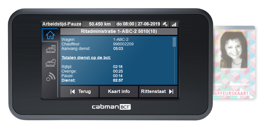 Hier staan uw totalen. Om uw lopende pauze te bekijken klikt u op ‘Rittenstaat’.